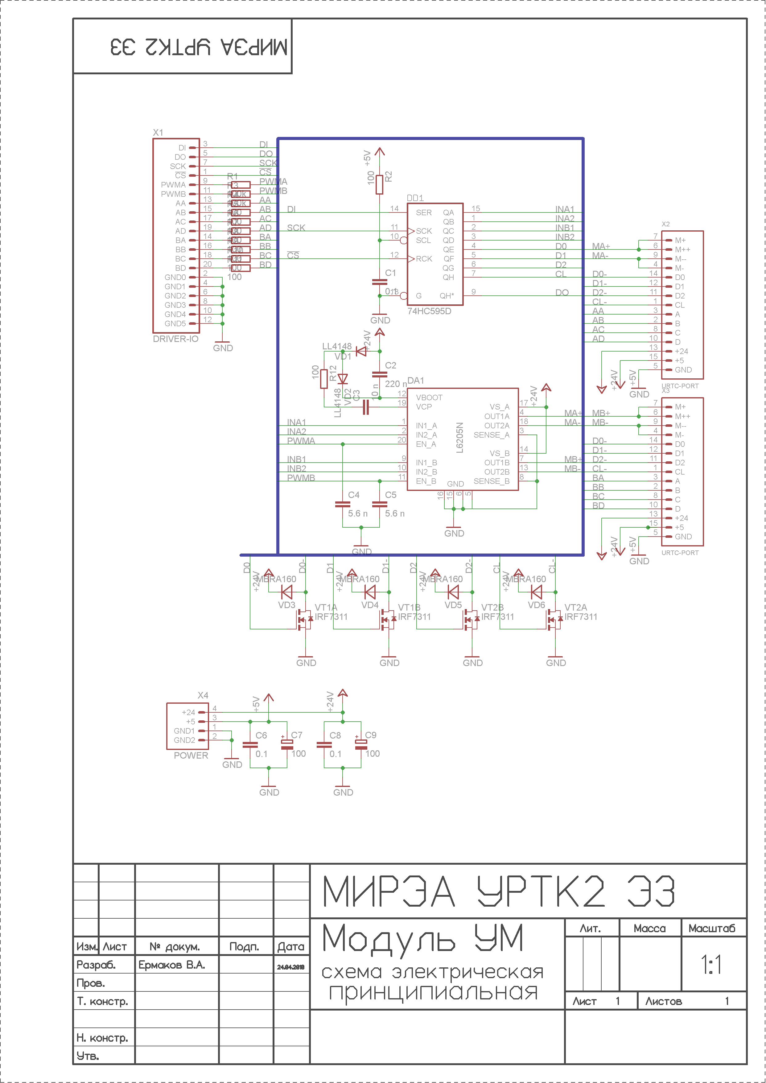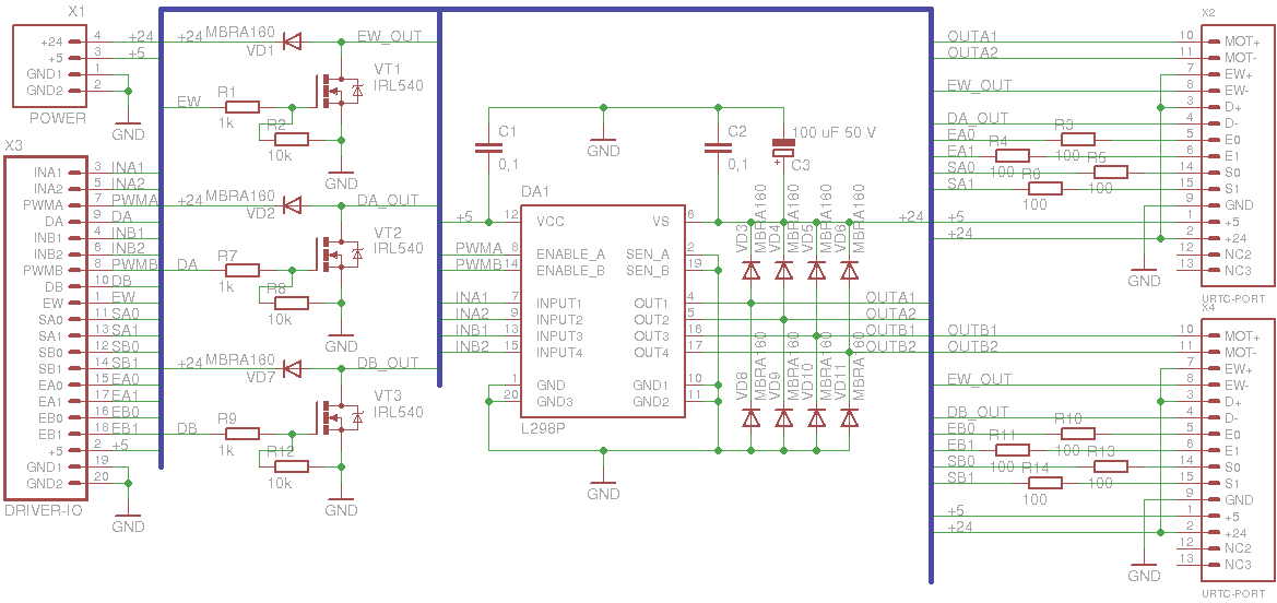 Выбран мост для моторов (L298) и набросал схему силовых модулей (всего 3-и штуки)