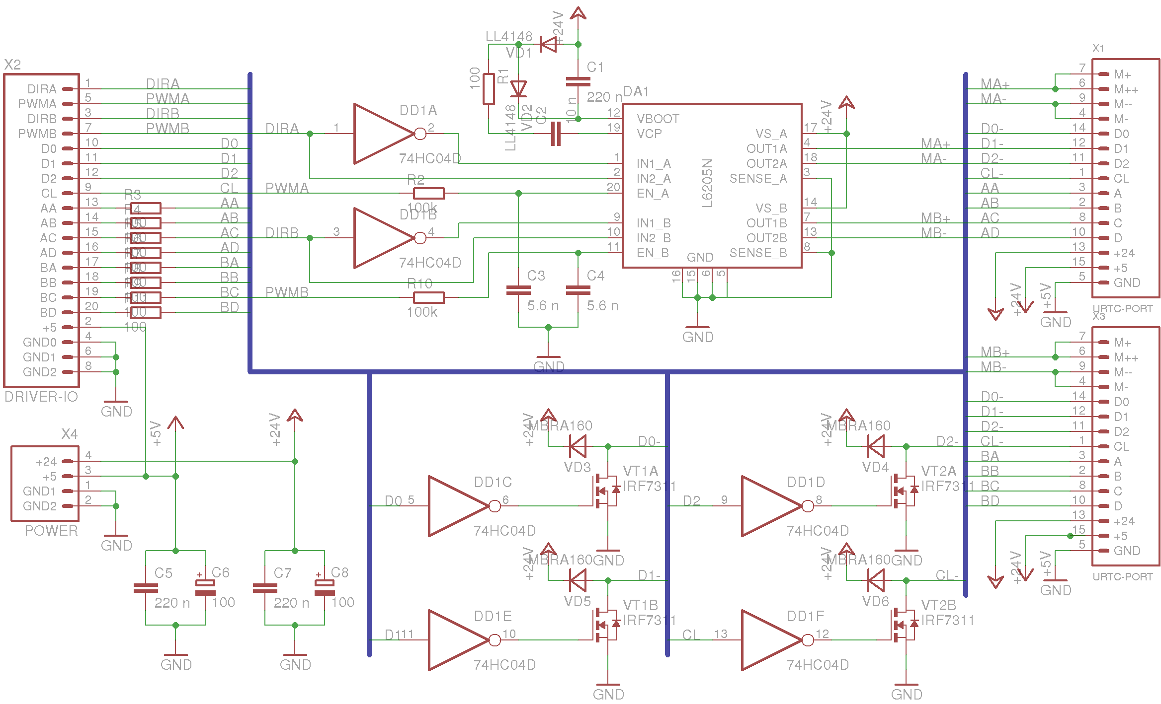 Выбран мост для моторов (L298) и набросал схему силовых модулей (всего 3-и штуки)