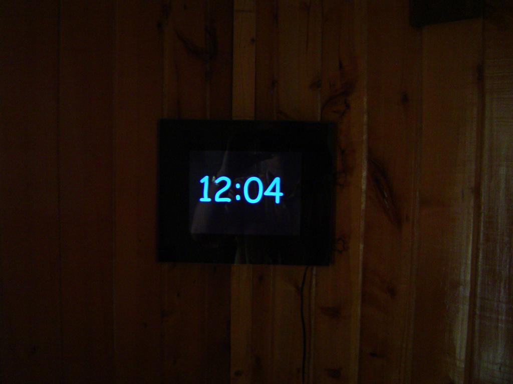 Пару лет назад приобрел себе фоторамку Diframe. Постояла на столе – надоело, повисела на стене - тоже надоело, забросил в шкаф. А тут вдруг подумал, не сделать ли из нее симпатичные цифровые часы.В некоторых моделях наложение часов на картинку заложено программно, но не в моей. Возможно идея не нова, но я додумался сам. Любая фоторамка может менять картинки с заданным интервалом (слайдшоу). На моей возможно выбрать интервал смены картинок 60 секунд, что и требуется. Для отображения часов и минут требуется как минимум 12х60=720 картинок. Делать их вручную, как говориться, облезешь. Так что я потратил 20 минут на написание программки, которая автоматически генерирует требуемые картинки и сохраняет их на диске. Остается только перекинуть их в рамку, выбрать текущее время и запустить слайд шоу. За сутки мои часы отставали примерно на минуту и я просто удалил одну из картинок.