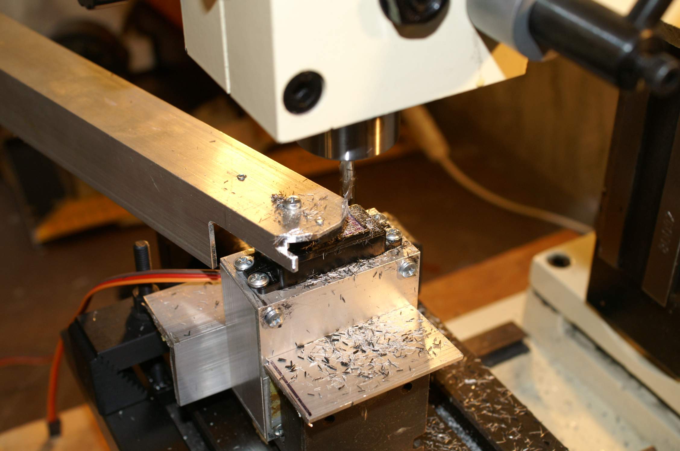 Крепление к качалкам пока на стадии обдумывания. Да и время уже поздно, всежтаки станочек (JET JMD-1) при фрезеровании тарахтит довольно громко.