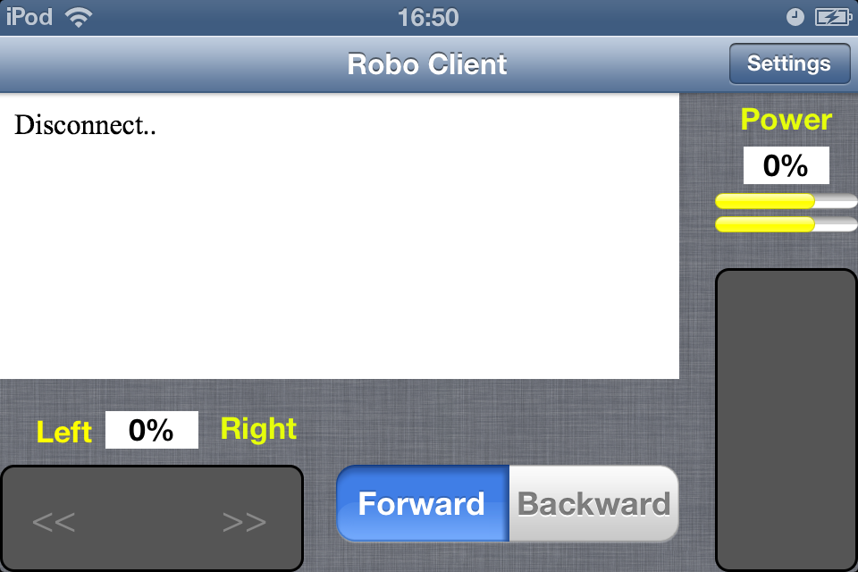 Платформа собрана на базе arduino + ethernet shield. Передача дананных по Wi-Fi (точка доступа dir320 на борту), удалённое управление через приложение на iPod, которое сделано пока чисто для испытаний. Использование точки доступа даст возможно также подключать другие устройства (ip камера, миникомпьютер). Взаимодействие iPod и arduino проиходит посредоством сокетов, я пока не стал использовать usb порт на роутере Dir320 для взаимодействия с контроллером и всяких специфичных прошивок чтобы иметь большую универсальность и меньшую зависимость от специфичного ПО.