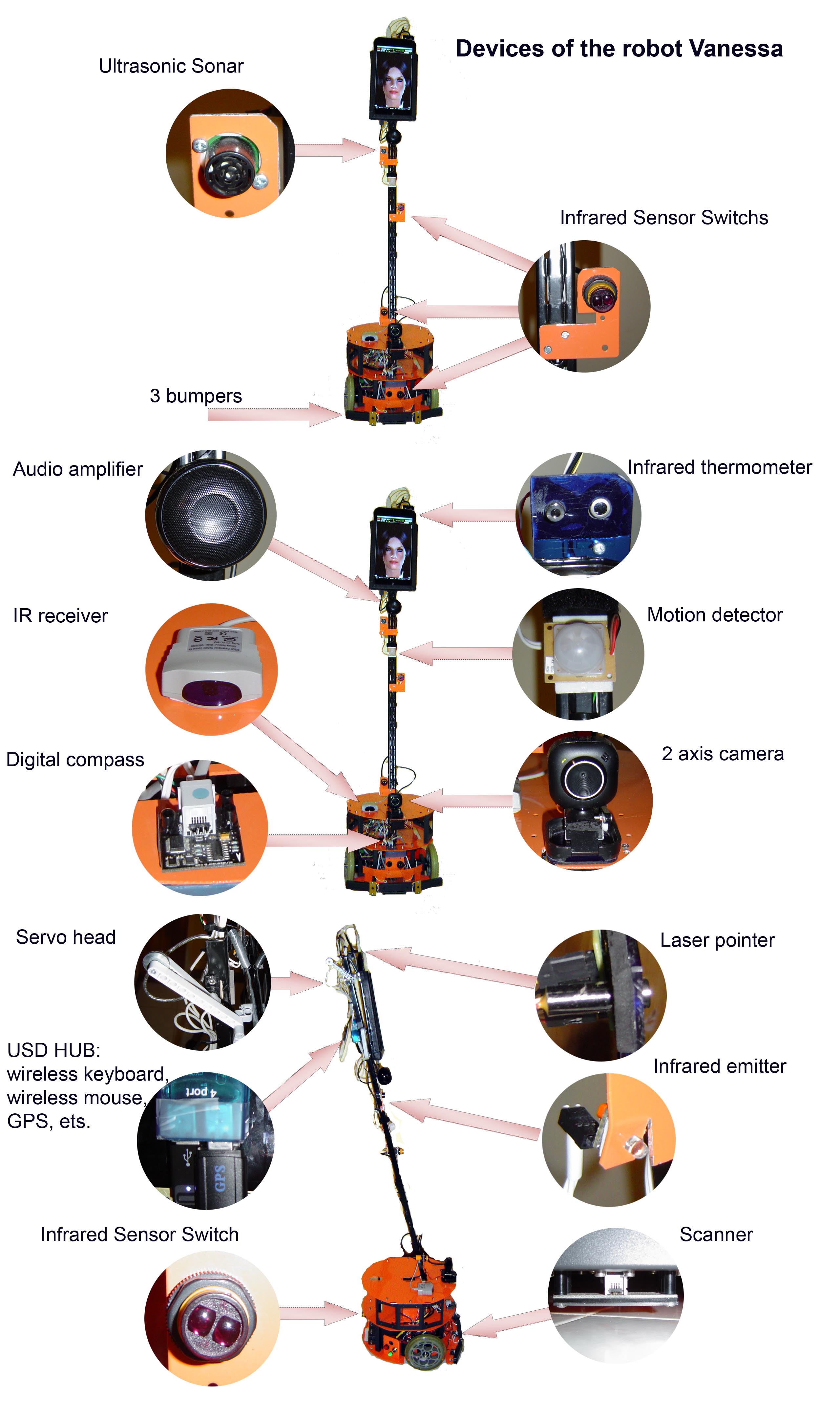 Как я уже говорил,маленькие дети реагируют на робота «как на живого». Решил провести эксперимент общения «Ванессы» со взрослым человеком, но не слишком подкованным в техническом плане. Объектом была выбрана приходящая 2 раза в неделю уборщица. В наших краях ее принято называть «мучача» (переводится, как «помощница», так что ничего обидного в таком прозвище нет). Эта женщина лет 50-ти, типичный сельский житель, бесконечно далекий от робототехники, хотя телевизор, конечно, смотрит. Моя семья сейчас в столице, так что мучача убирается в доме одна, пока я на работе. В общем «объект» подходящий. Тем более, что она уже привыкла, что что-то типа швабры на колесах торчит у стенки, и я не особо опасался, что ее хватит кандрашка, когда робот выкатится с ней пообщаться (тем не менее предупредил соседей, чтобы были готовы в случае чего оказать первую помощь).