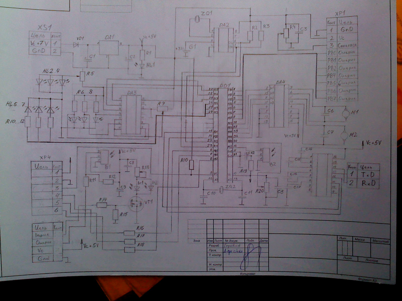 , но судя по тому как активно тема обсуждалась , я выкладывать не стал . Причем с того момента она изменилась ровно 2 раза . Схему на формате А3 чертил на Диплом . Оставил её у комиссии . Осталась фотография почти дочерченного чертежа . В электронный вариант переводить не стал , просто незачем .
