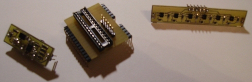 Робот собран на основе фенольного шасси, движки от двд-ромов, мозг - мега8, питание - LiPo одна банка, повышающий импульсный стабилизатор до 5В, схема контроля разряда аккумулятора, датчики линии - 6 ktir0711s, датчик на основе tsop. Конструкция модульная.