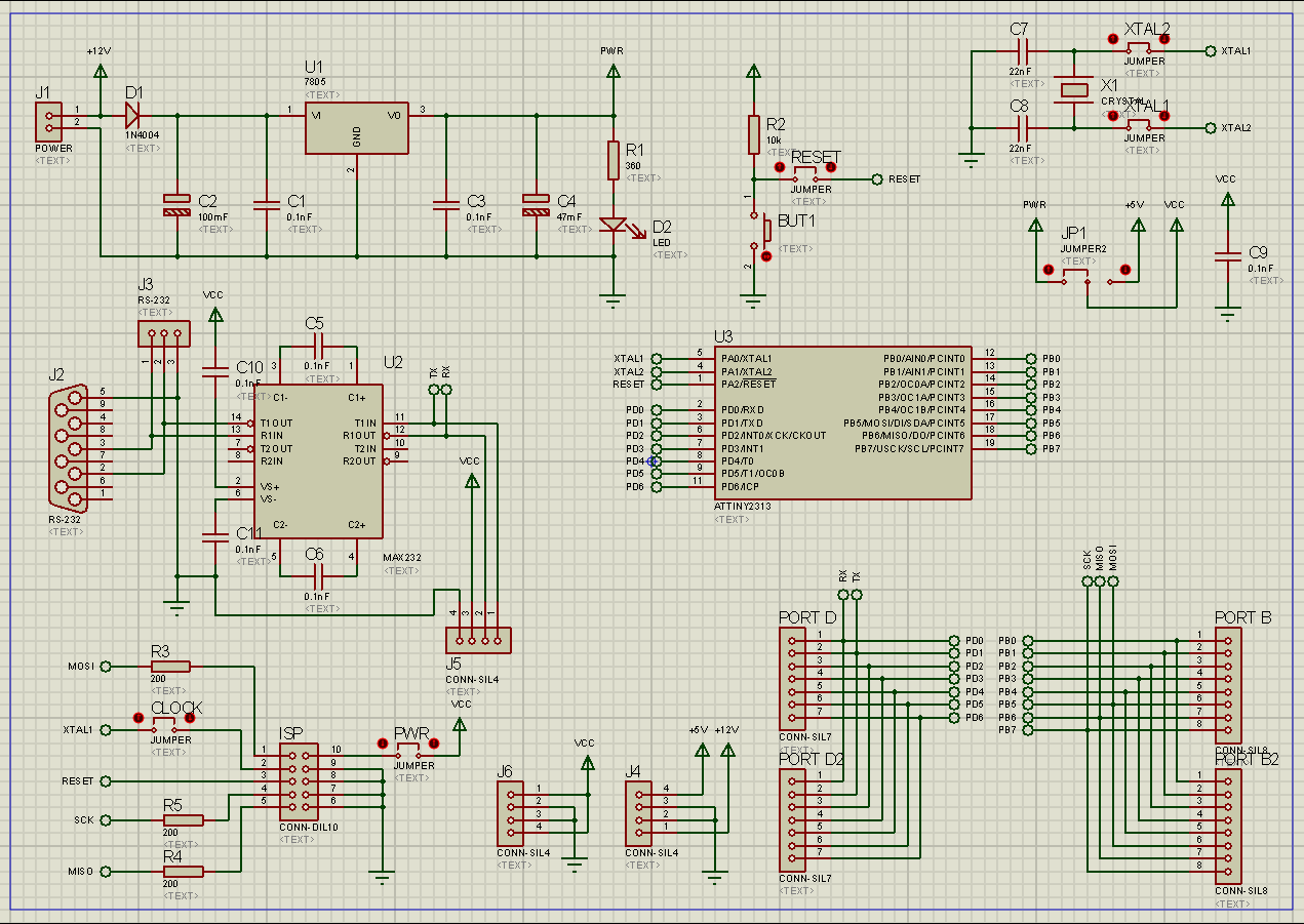 - PORDB и PORD микроконтроллера выведены в виде двух разъемов (один штырьки, другой наоборот отверстия для штырьков). Если к штырькам удобно подключаться контактами PLS (), то к разъему с отверстиями можно подключаться обычными медными проводами от компьютерного кабеля «витая пара» (они как раз имеют подходящий диаметр и жесткость), или в них вставлять дополнительные модули по типу «сандвича», по аналогии с тем, как это сделано для другим плат робо-контроллеров.