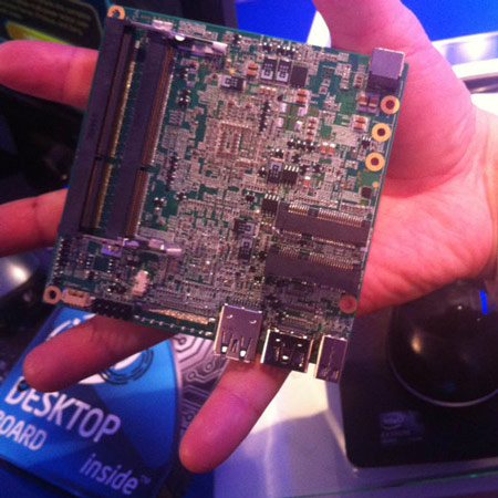 Все компоненты компьютера разместились на печатной плате размерами 10 х 10 см. При этом в конфигурацию NUC входит двухъядерный процессор Intel Core i3 или i5 (Sandy Bridge) с интегрированным графическим ядром Intel HD 3000 и двухканальная оперативная память типа DDR3 (два гнезда для модулей SO-DIMM). Есть два слота mini PCI Express. Оснащение включает интерфейсы Thunderbolt, USB 3.0, 802.11 b/g/n и HDMI. Охлаждение процессора — активное. Согласно имеющимся данным, цена NUC будет примерно равна $100. Появление новинки в продаже ожидается во втором полугодии.