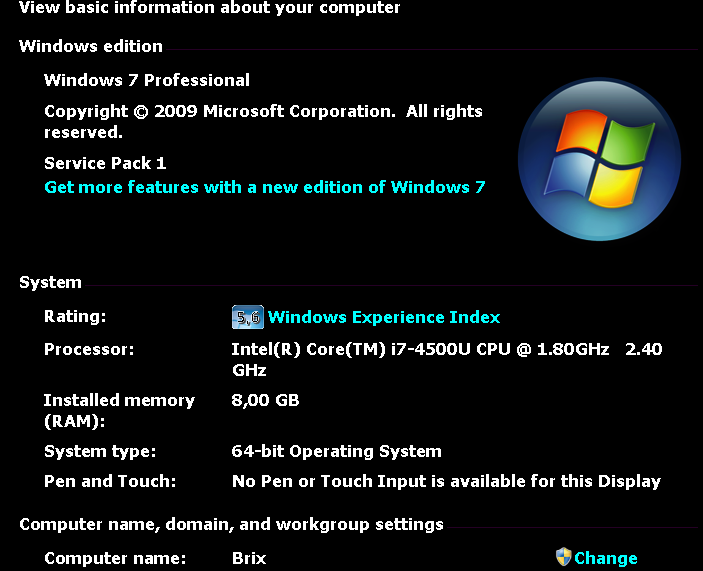CPU Intel Core i7-4500U 1.8GHz / 3.0GHz