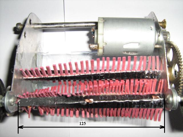 . Это все надо постараться отсеить. Три щетки сметут всю пыль, как пылесос. А если будет щель мм 2 между полом и совком, то шарик туда закинет а вот песок нет. От крупных деталей (куски роботов), чтоб их не засосало в механизмы можно спастись поставив перед щеткой гребенку до пола. Типа расщески но расстояние межды зубьями - 6.5 мм, чтоб шарик 6мм влез и все.