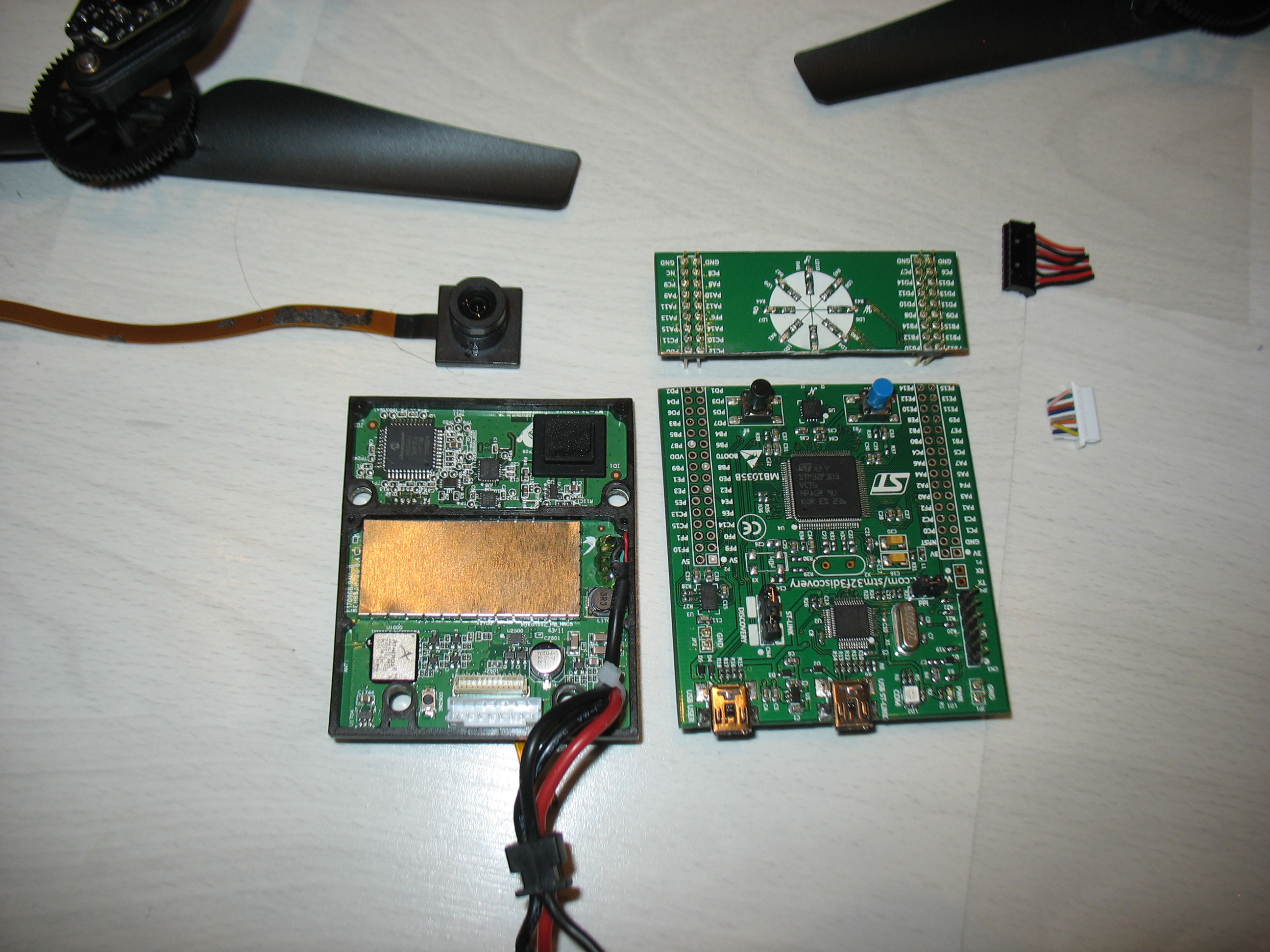Решил переделывать дрона, выкину плату с линух, выкину wifi, поставлю свою телеметрию, камеру на блекфине, сенсорику или штатную оставлю или STM32F3DISCOVERY + ez430 chronos.