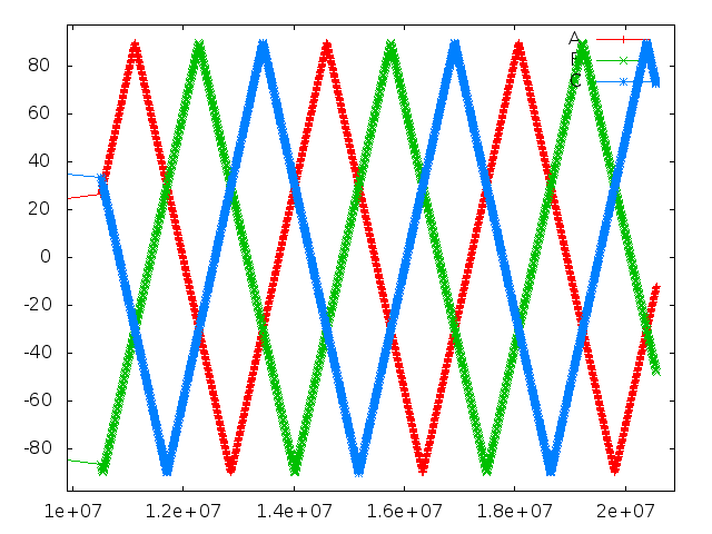видно что положение меняется от -90 до 90 линейно ( y=arcsin(sin(y)) =) )