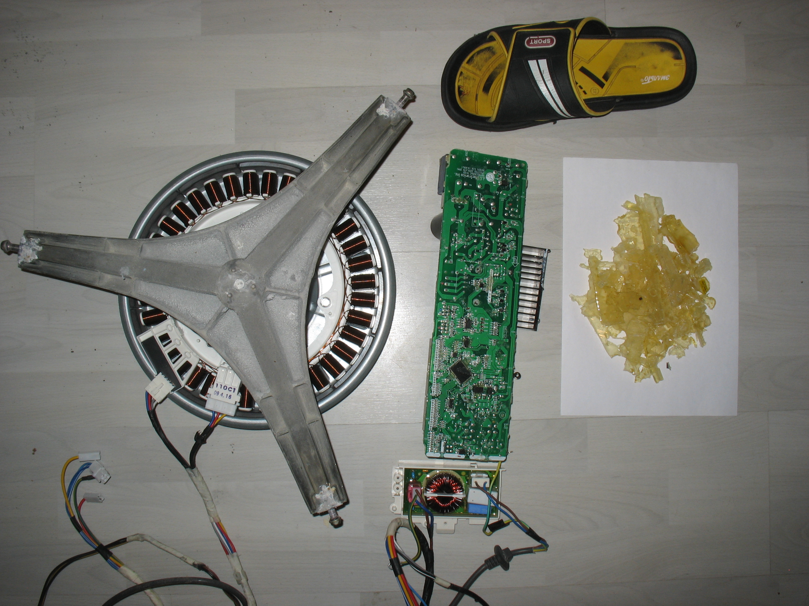 Тапок для масштаба глобализма. На бумажке кучка - это чем была залита плата для защиты от влажности. Интеллектуальный повер модуль (IPM) от Fujitsu, маркировки нет (наверно на обратной стороне чипа, надо отпаивать).По картинке очень смахивает на PS21961-4