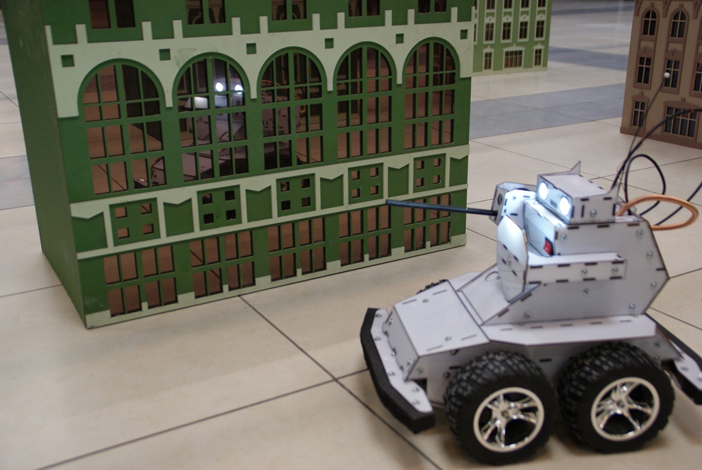 Вот таким вышел новый дизайн робота. На днях выложу видео со стрельбами.