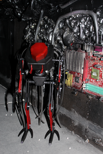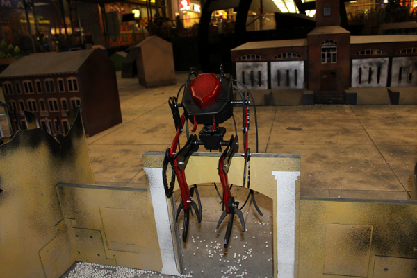Нет, башню пока не стали вращающейся делать. Масса Кибера большая, скорость движения тоже, на ходу, при повёрнутой башне, зацепится за дом стволом и капец ему. Либо надо продумать механизм сервосейвера, что вполне возможно. Вообщем, задача не из сложных, но пока не делаем - не разорваться.