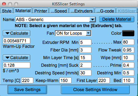 setar писал(а):[*] Extruder RPM min - раритет доставшийся от машинок с приводом экструдера от постоянного двигателя, он тупо не умеет вращаться медленее чем некая скорость. Для нас, использующих в экструдерах шаговики тут может стоять и ноль, но я не уверен, поэтому у меня стоит 0.1