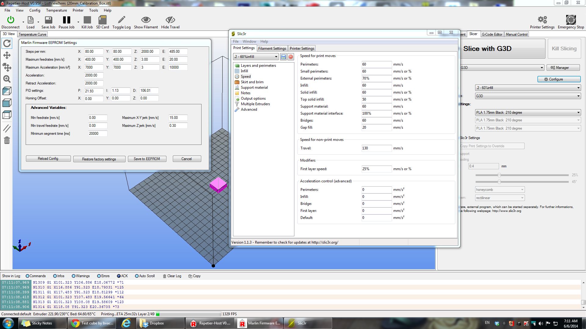 Вот и пример печати на 60мм\с до 70 разгоняю скоростью подачи на20% больше.