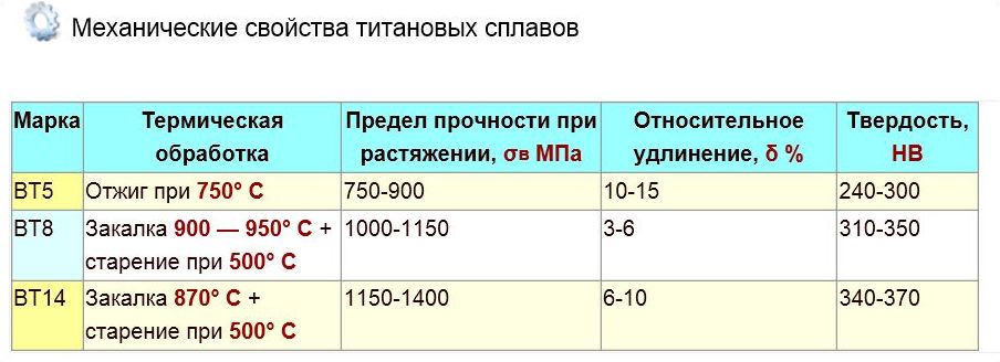 "Титан и его сплавы плохо работают на трение и износ. При плоском скольжении титана по титану коэффициент трения достигает значений до 0,55. При скольжении титана по стали, бронзе, латуни коэффициент трения уменьшается. Лучшим для работы в паре с титаном являются латунь и бронза (коэффициент трения примерно 0,18). Приведенные в табл. 7 сравнительные данные показывают исключительно высокий износ титана по сравнению со сплавами на медной основе и сталью."