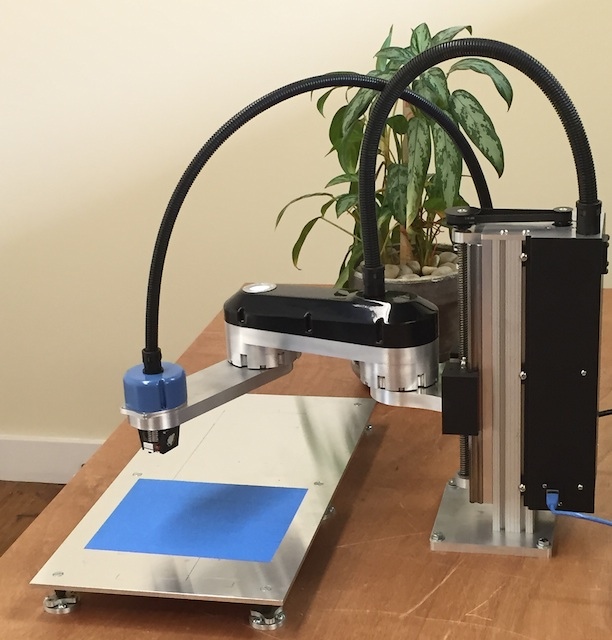 https://www.kickstarter.com/projects/53 ... -arm/postsБольше нигде не нашел такую схему привода. Эта схема, на мой взгляд, самая простая, есть возможность печати несколькими цветами, если поставить 2 или 3 такие стойки. Эта схема позволяет печатать несколько изделий, напечатал одну, потом рядом другую. Они механику используют как принтер, гравер или фрезер, расстановщик SMD деталей, измеритель размеров, наверное можно и для лазерной резки использовать. Сложно для такого типа привода математику написать?