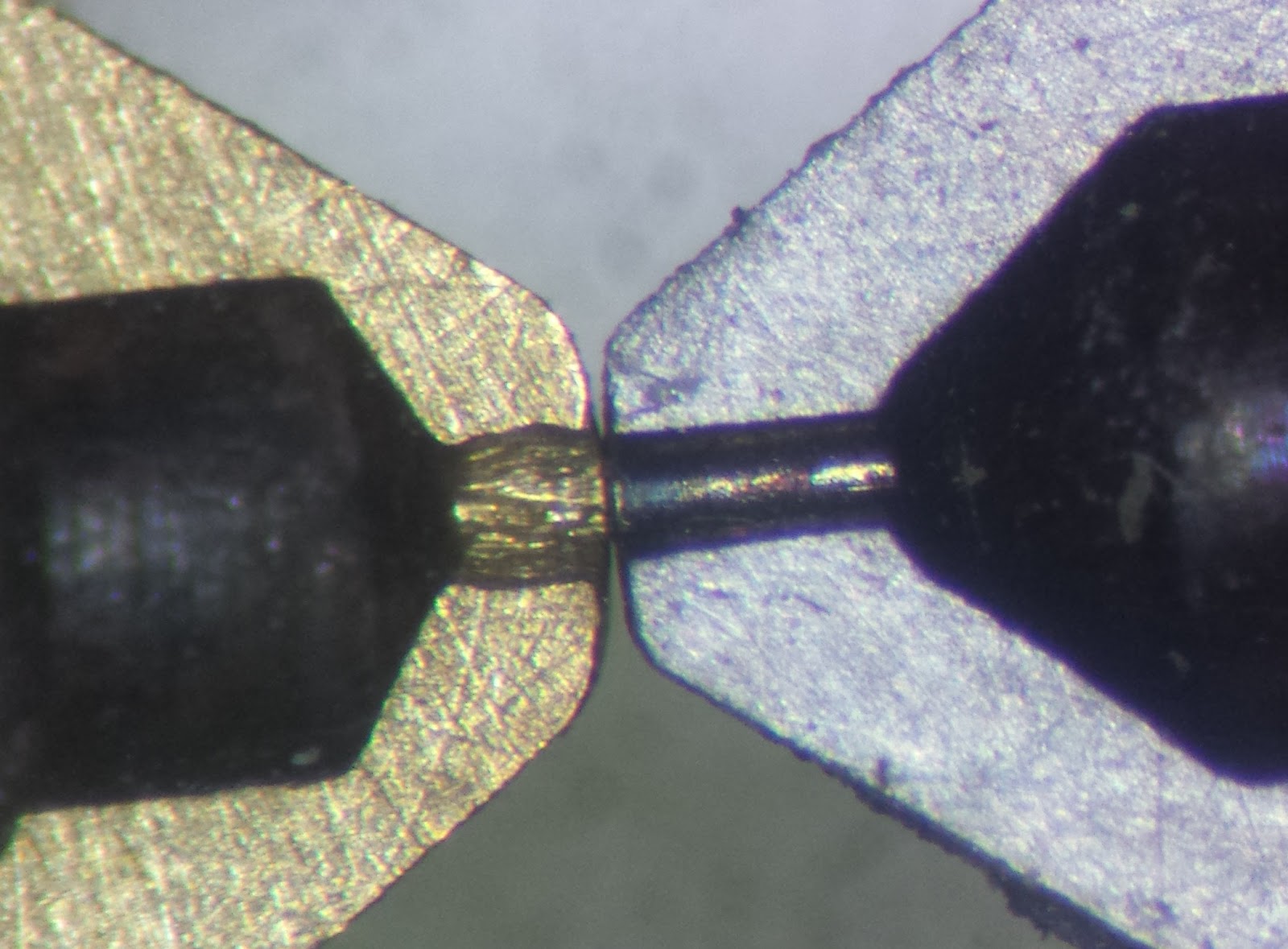 Сопло после печати 250гр пластика с углеродным наполнителем(слева) в сравнении с обычным новым соплом. Канал истерся неприличным образом, а кроме того и кончик сопла тоже стерся(канал стал заметно короче) и округлился.