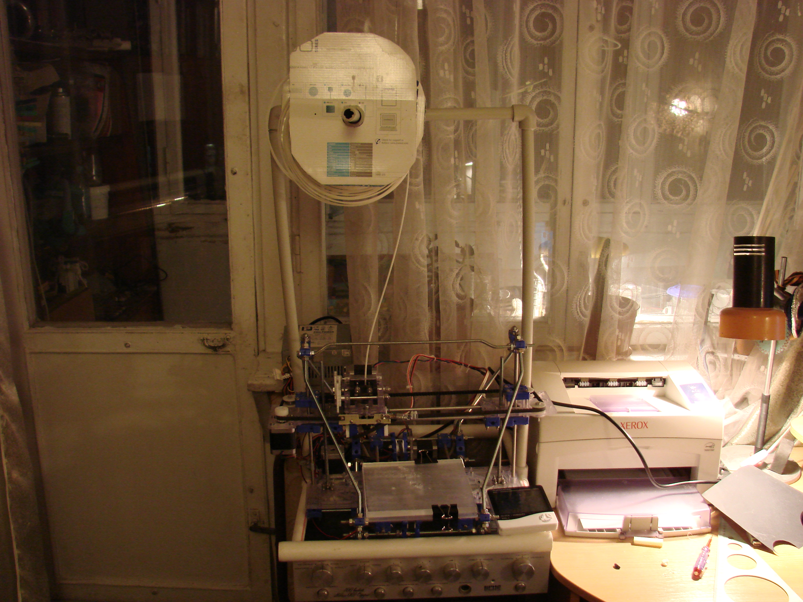 Пока собираются детали на Ultimaker, я(вначале этого года) решил проверить не явились ли миру киты с более демократичными ценами. Прошерстив kickstarter.com и indiegogo.com я обнаружил весёлый и весьма толково сделаный проект seemecnc.com (c доками на seemecnc.org и форумом на яху) Суровые штатовские мужики сразу положили болт на печать деталек на самих принтерах. Сделали конструкцию из максимально однотипных деталей и тупо их отлили в нужном народу количестве. Короче 149$ стоит кит со всем железом, пластиком, экструдером и хотендом! Доставка в Украину по уточнённой цене - 47$. Решено! И приехал кит. В него даже положили термистор и пару резюков для хотенда (были ещё 2 диода но оказалось они нафиг не нужны). Электронику ихнюю я брать не стал. Пошёл на reprapworld.com где почти даром раздавали кучу пользы. Набрал себе ардуину, рампс1.4(несобраный), 4 степстика,резюков с термистором, 4 шаговика и полкило пластика 3мм для затравки. Всё шмутьё обошлось примерно 160евров плюс доставка.