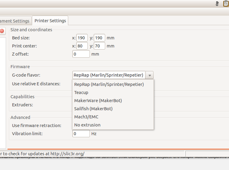 Alexeus писал(а):Подскажите пожалуйста, какие настройки slic3r копать? У меня такой трабл- пытаюсь напечатать кубик 23х23х10мм в один слой (т.е. толщина стенки в один слой). Сопло 0.29, высота первого слоя -пробовал разную от 0.25 до 0.1мм, следующие 0.19мм. Печатает окантовку и первый слой совсем тонко, даже при выставленном мультике потока в 2-3 еденицы. Затем со второго слоя, видимо, начинает давить именно с учетом мультиплицирования потока- толсто. В результате не приклеивается или плохо клеится т.к. первый слой получается с разрывами и тонкий, а второй уже падает на него сверху и фигня выходит.