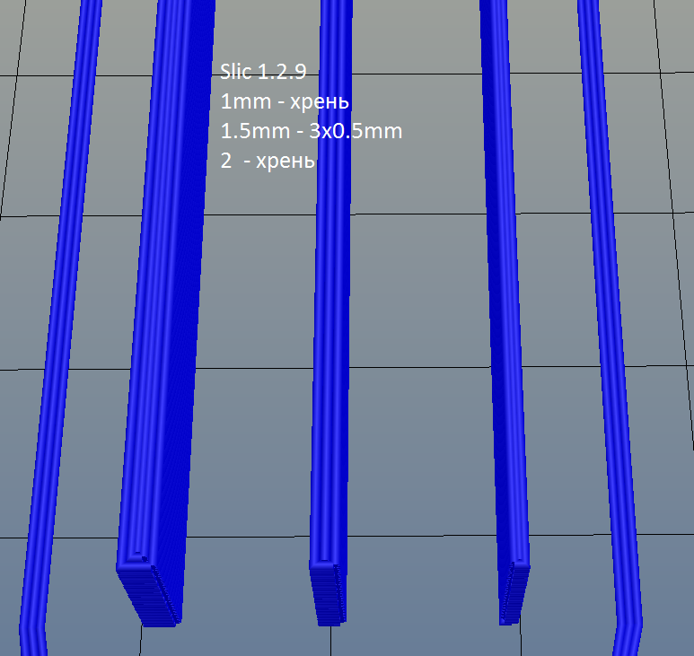 Расшарил на яндекс диске https://yadi.sk/d/KoaPe--UisZog простую модельку. Три полоски толщиной 1, 1.5 и 2мм. Там же образцы Gcode с моими настройками.