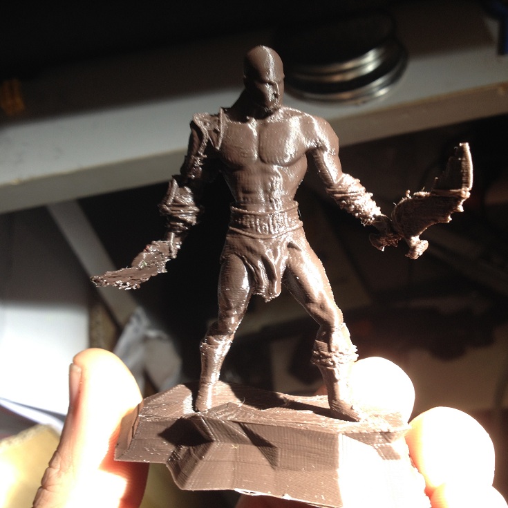 А моделька у тебя Кратос? Симпатичная статуэтка должна получиться. А если руки ему по отдельности печатать, а потом приклеить? Если модель под покраску, то разделить на детали в самый раз. Потом щели зашпаклевать модельной шпаклевкой и будет красота :)