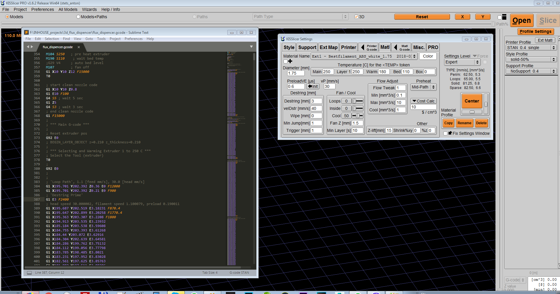 на строчке 361 принтер делает "прочистку сопла" и выдавливает небольшой кусок пластика, ждет, после чего едет к центру стола печатать модель.