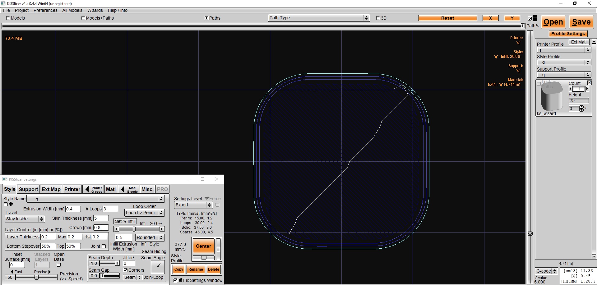 https://youtu.be/zxtQChU2hyUСтоит задача - научить kisslicer вставлять код переключения головок. Если использовать абсолютные координаты, то последовательность действий для переключения отличается только значениями X. Если относительные координаты, то направлениями перемещения по оси X, т.е. надо менять + на - и наоборот.