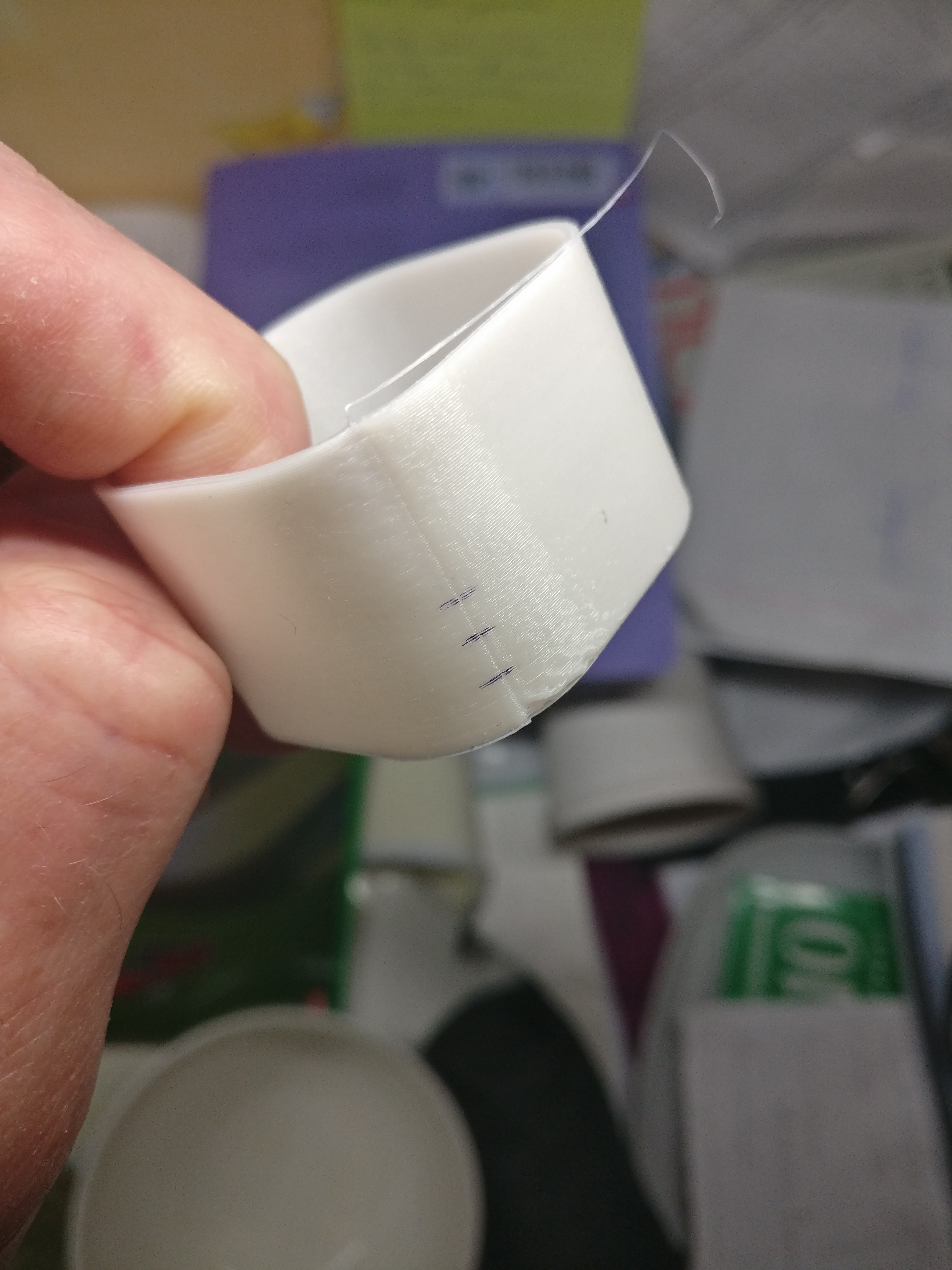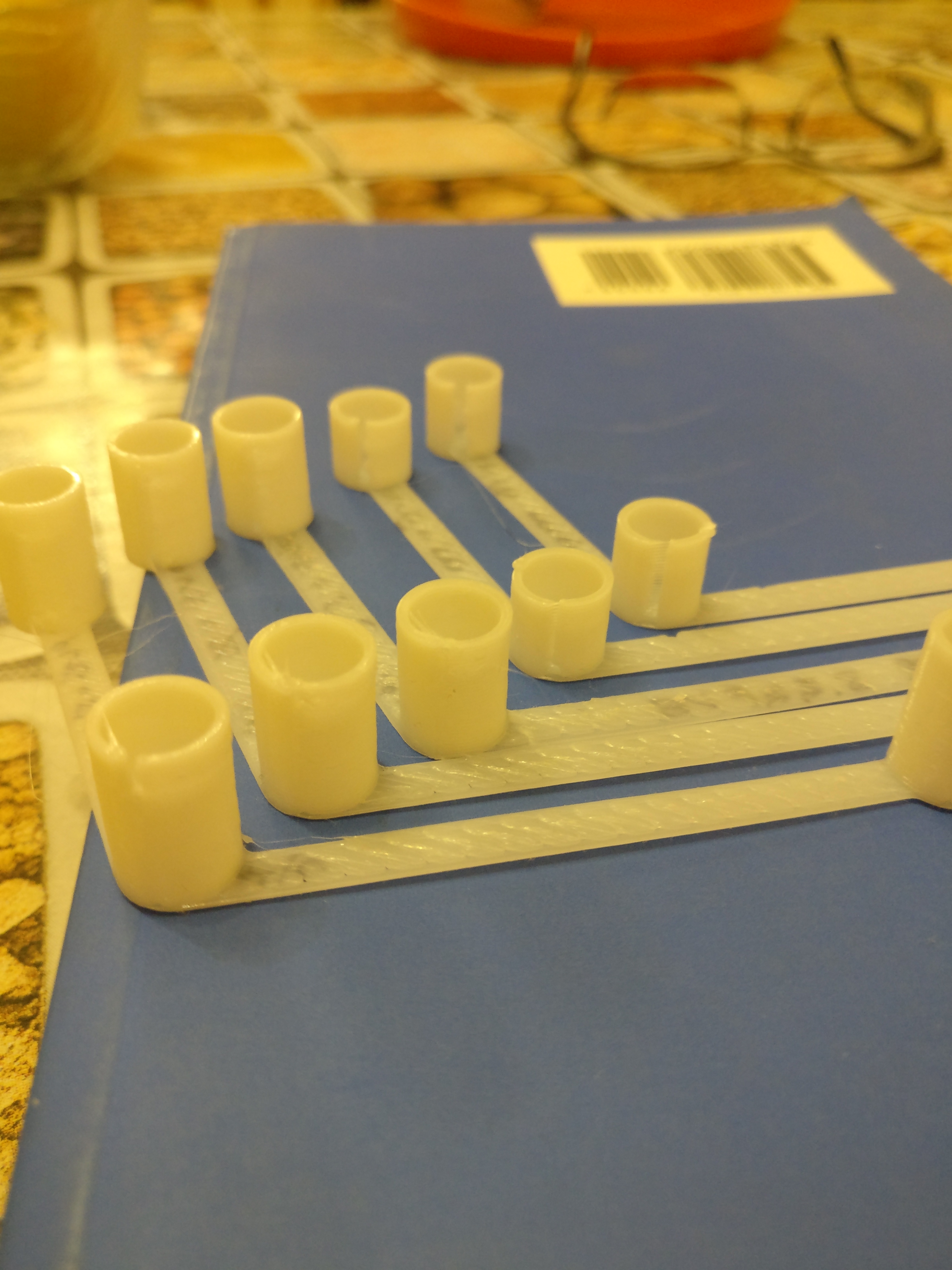 Даже комбинация: pVE=0, скорость печати 10 мм/сек, ретракт=0 дает в начале слоя на одном столбе недоэкструзию и на другом - разрыв.