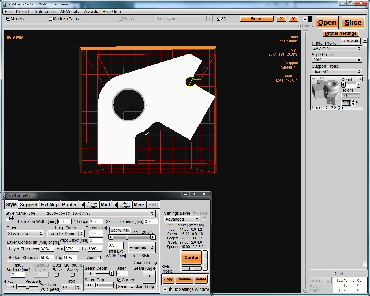Прижим был сильным, ослабил. Ток на драйвере поднял до 1А, выше некуда. Все равно при 430 шагах/мм вхолостую давит 100 мм, а через сопло 87 мм. И при этом, что удивительно для меня, печатает полый кубик с целевой шириной стенки 1 мм (два периметра по 0.5мм) реальной шириной 1.1 мм, хорошо спаянные периметры. Т.е. на тестовом кубике недоэкструзия не видна.