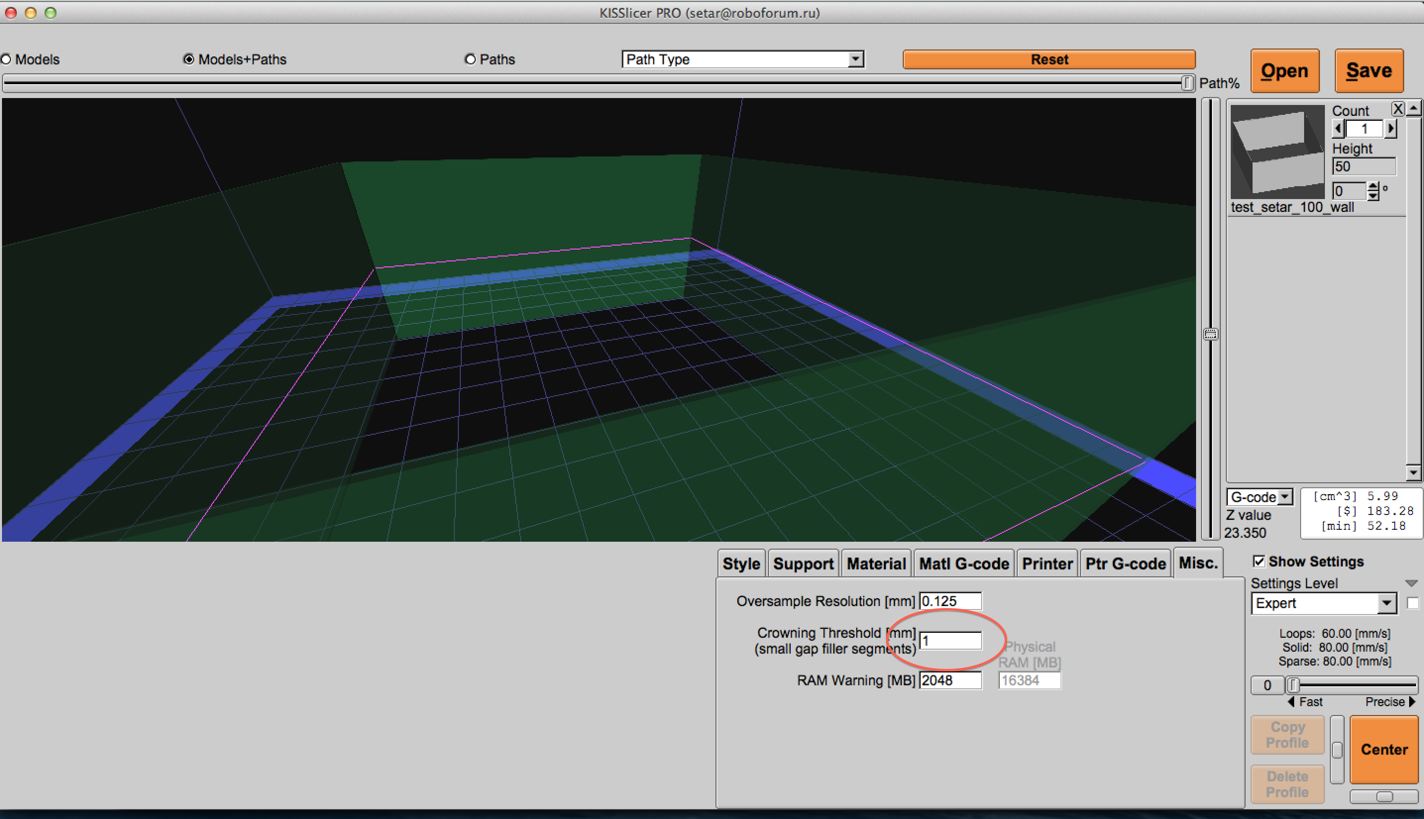 machupikchu писал(а):Не могу напечатать деталь, которая заканчивается венчиком в один слой. То есть толщина модели там 0.3 мм. Kiss начинает делать пропуски и жутко тормозит принтер на данном участке. Slic3r, без пропусков идет, но так медленно и с такой малой подачей, что в итоге все равно кал получается. Как быть? Как напечатать стеночку в один слой?