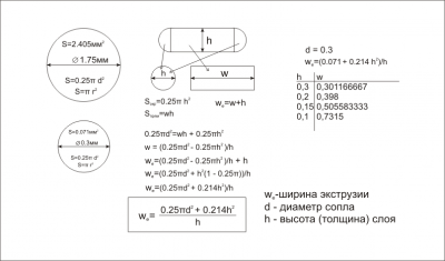 - Теоретически: при уменьшении слоя, ширина экструзии должна увеличиваться, следовательно должен увеличиваться диапазон расстояний между линиями, для калибровки ширины