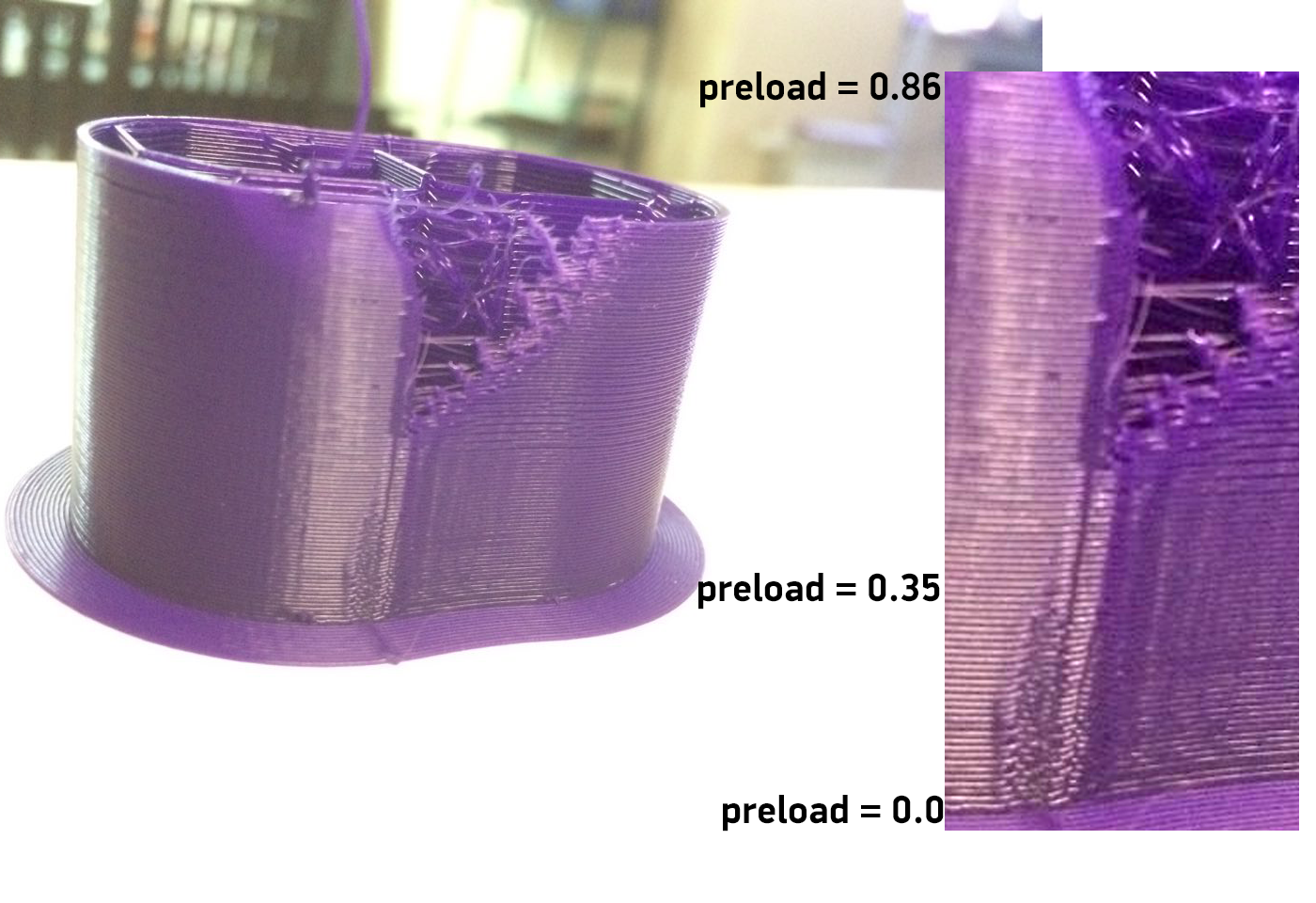 KISSlicer писал(а):Добавлено много новых функций. Одна из них называется "Preload". Она позволяет слайсеру управлять дополнительной подачей прутка, который требуется подать, чтобы создать необходимое пружинное усилие, которое и выдавливает пластик. (Используя эту функцию я могу печатать мягким TPU на боуден трубке длиной 700+мм !)