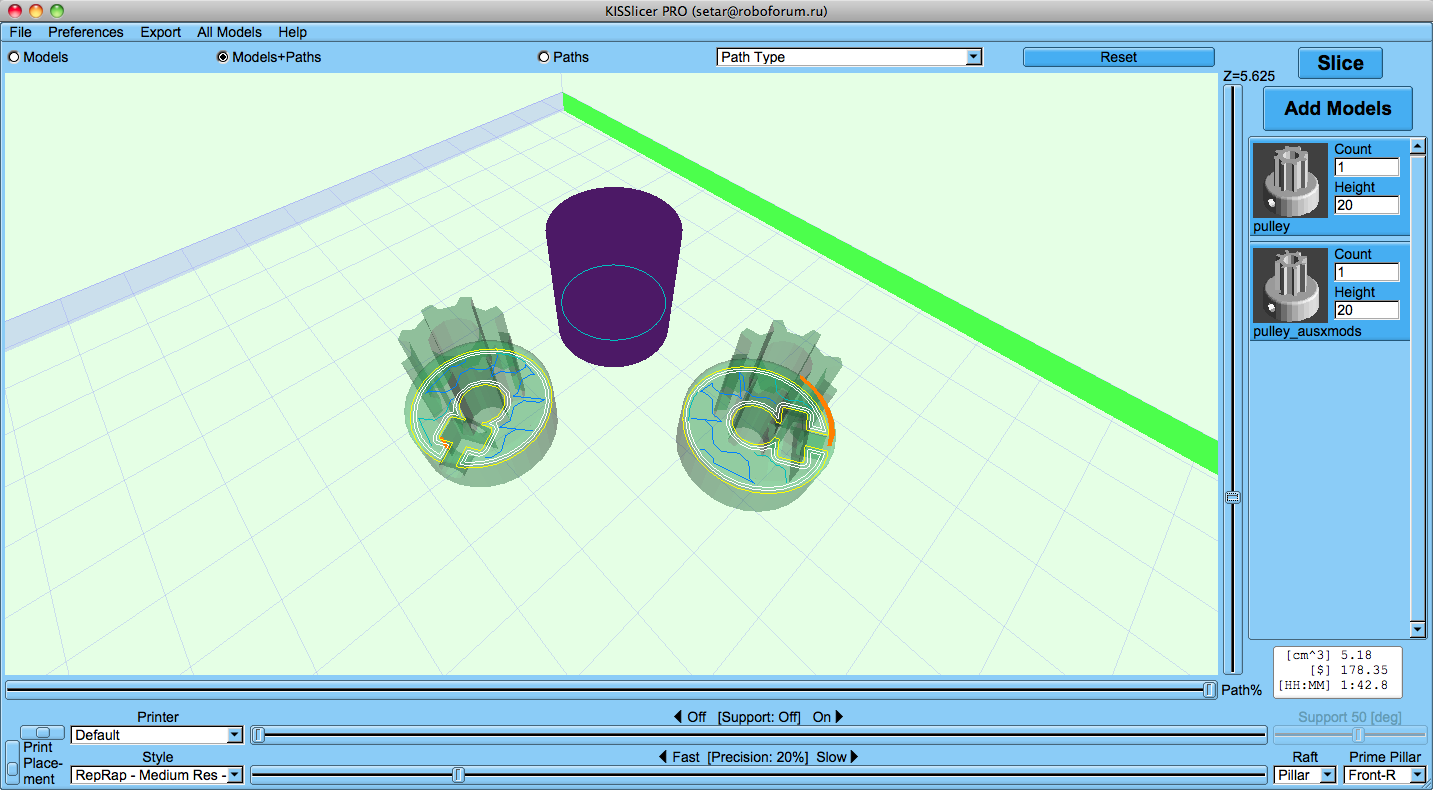 Влияет на толщину рафта - цена печати за час времени (не удивляйтесь я поставил цену в рублях)