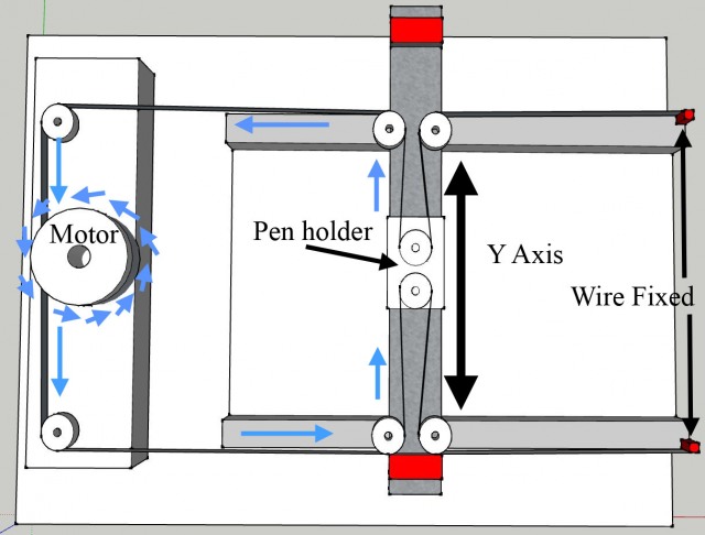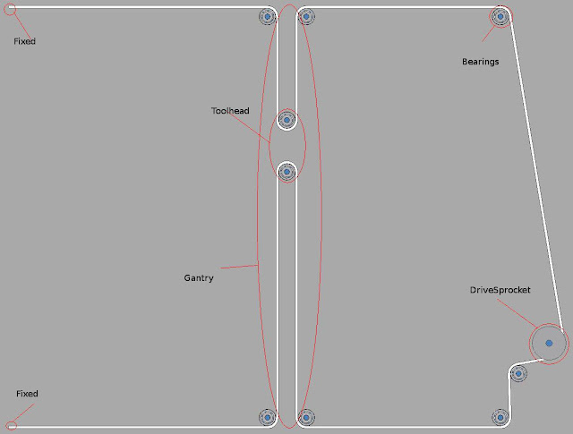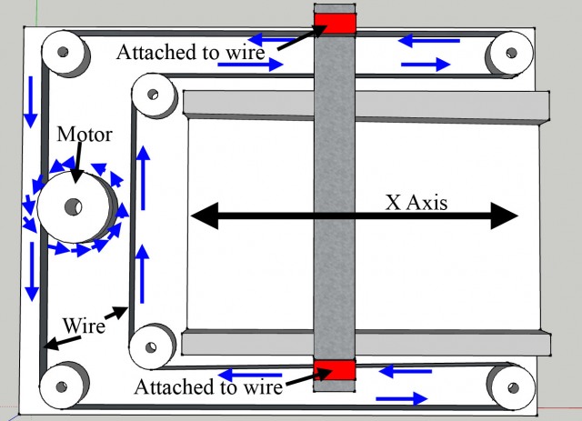 CartesioОсь Х приводится стандартно - ременные петли с двух сторон, двигатель крутит общий для петель вал. Ось Y приводится хитро: