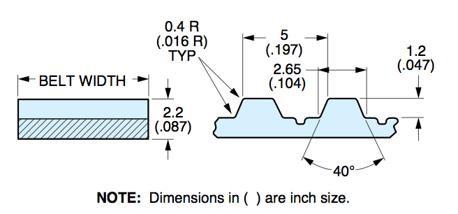 Следует отметить особенность расчета профиля зубьев зубчатого шкива, который производится не по делительной окружности, а по окружности, проходящей через середину высоты зубьев.