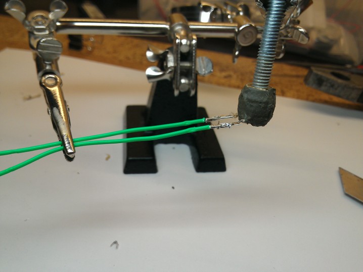 Потом, формируем вывод нихромовой проволоки, немного разматав и при необходимости разломав керамику.