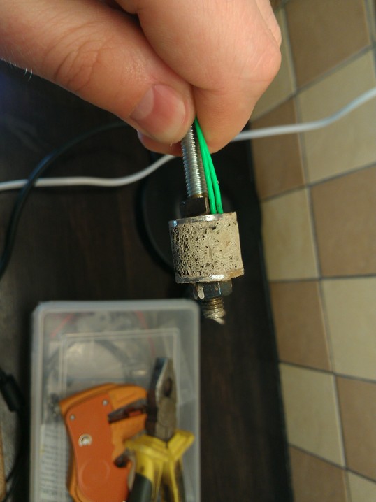 Далее собираем конструкцию с шайбой. В шайбе заранее проделал две канавки для проводов.