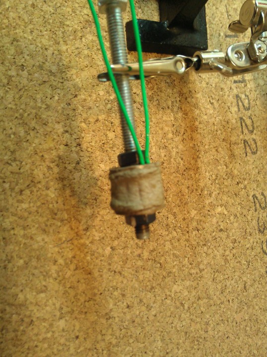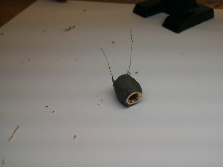 Далее собираем конструкцию с шайбой. В шайбе заранее проделал две канавки для проводов.