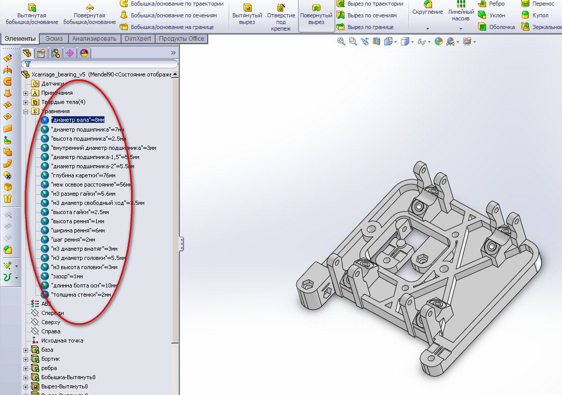 Уважаемый setar, Вы в этой теме писали, что проект каретки можно легко перерисовать под свой размер валов. О какой таблице Вы говорили? В solidworks во вкладке "уравнения" вижу основные размеры, но исправить ничего не могу.