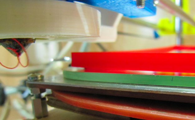 У меня стол на м90 чуть больше самой печатной платы поэтому я стекло прицеплял самыми маленькими клипсами какие смог найти (а они есть совсем маленькие в канцтоварах) и то башка норовила их сшибить при печати юбки. Кроме деламинации была проблема с углом в котором подъём по Z проиходит.там почему после поворота не было экструдирования. Выключение на пробу дестринга привело к дырке около 3мм поскольку хотя ретракта и нет но есть остановка подачив момент подъёма и нет прайма после этого Также замечена такая штука - ставим width=0.6 и толщину стенки 0.6 в модели - кисс считает что стенка уже и показывает её красным. При печати она 0.4мм. Если же width =0.4 то вроде всё хорошо...