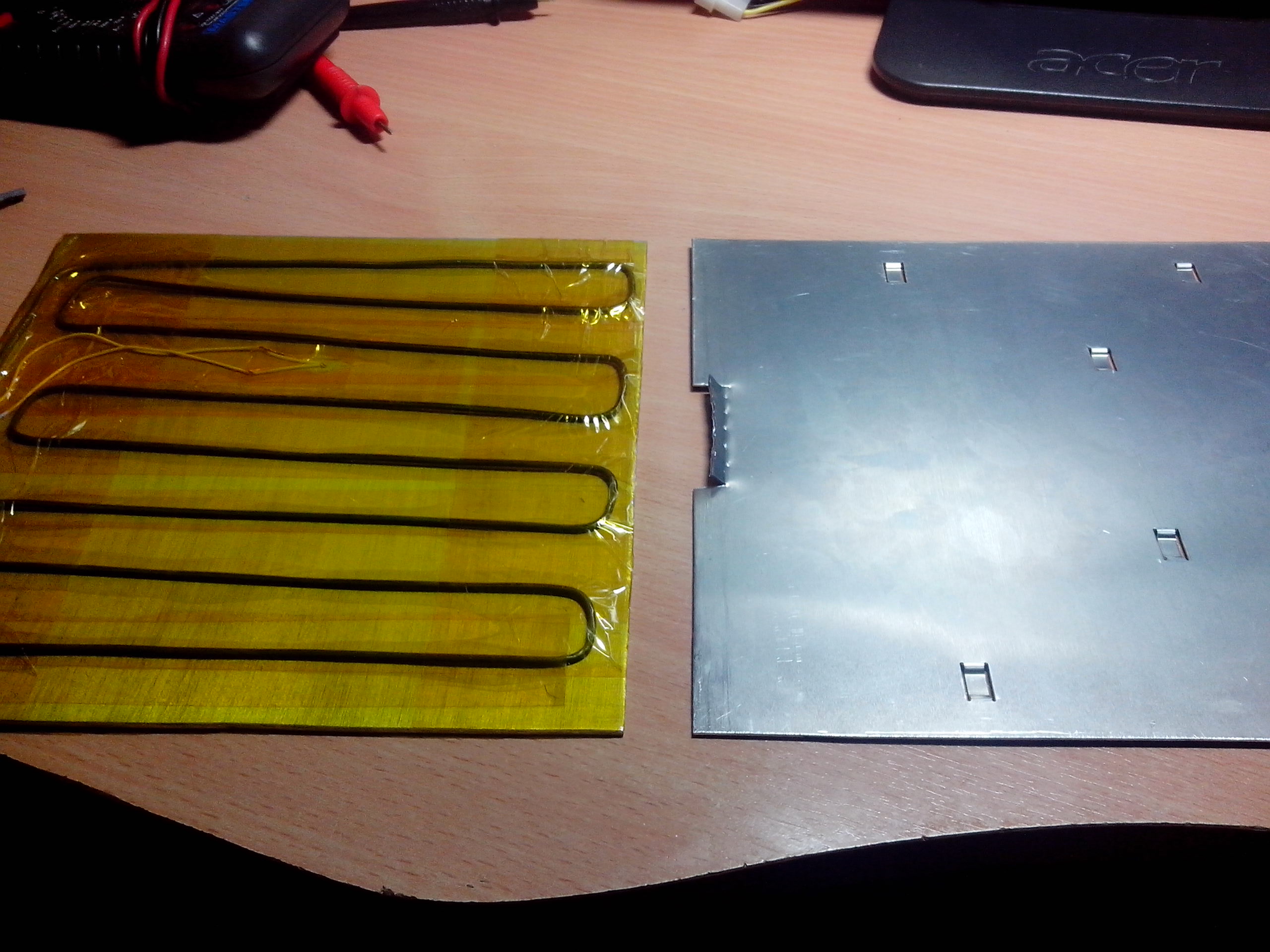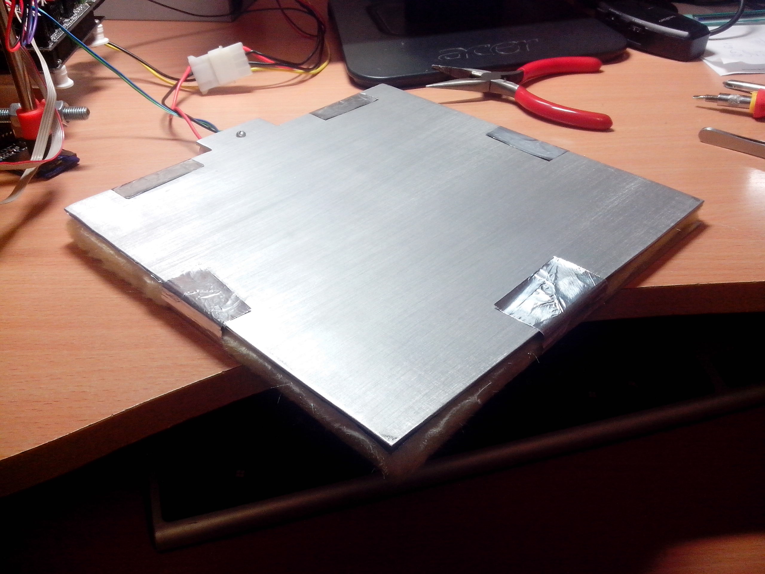 unigenum писал(а):Бутер такой: стол дибонд - 10мм воздух - пробковый коврик 3мм - термистор в центре - pcb 0.6 Ом дорожками вверх - стекло 3мм
