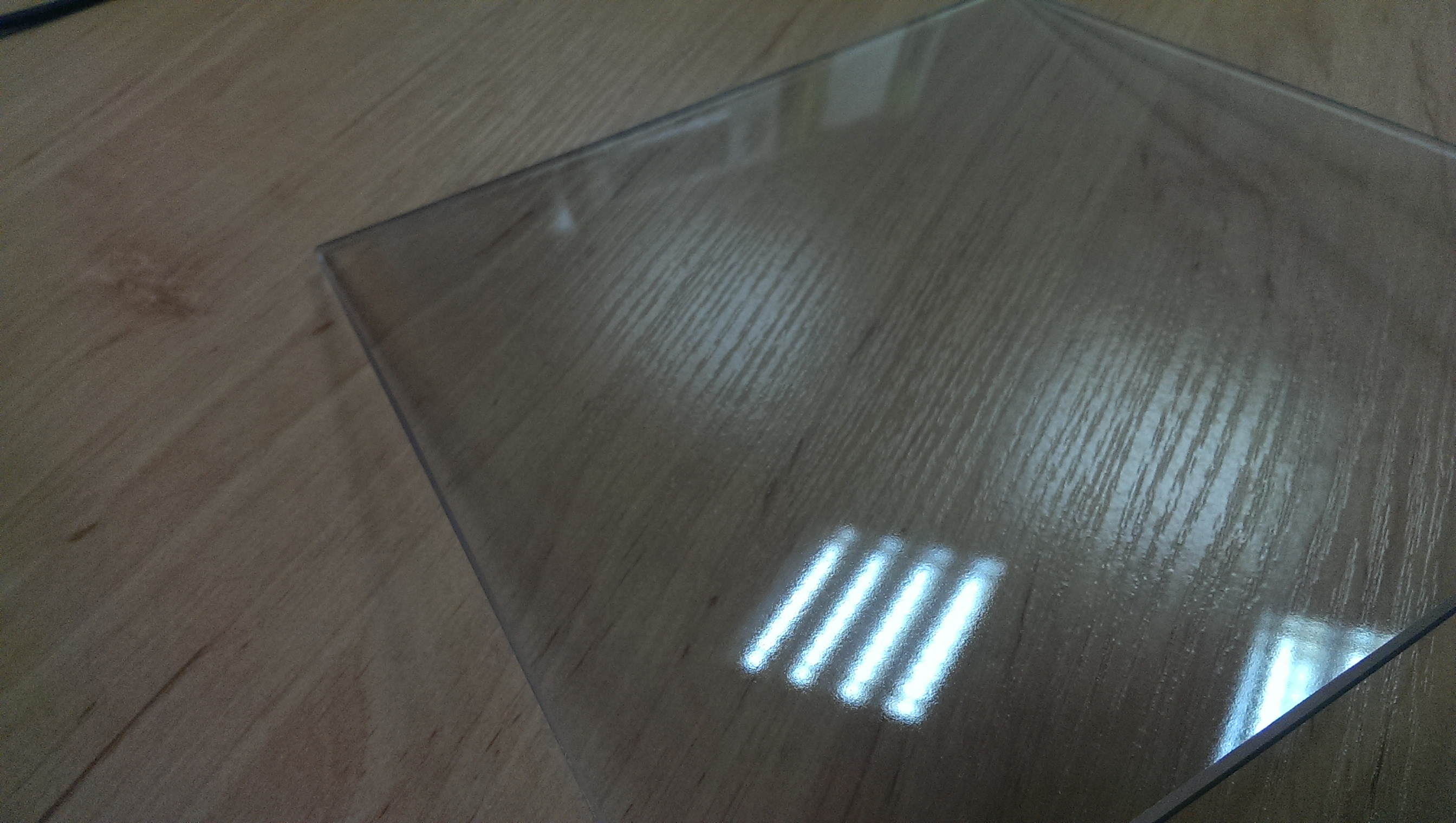 Необходимо было напечатать две модели 10х5 см, первая напечаталась отлично, вторая постоянно отрывалась от стекла через некоторое время. Так и не понял в чем причина, стекло промывал спиртом, но безрезультатно. Пока отложил стекло до лучших времен.