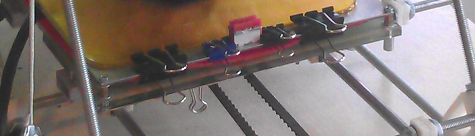 Регулировка - в каждой точке две гайки (сверху и снизу) алюминиевого листа, увеличенных крутилками (на фотографии вообще жесткое закрепление, регулировка подкладкой шайб). Главное никаких пружин, это зло на высоких скоростях работы.