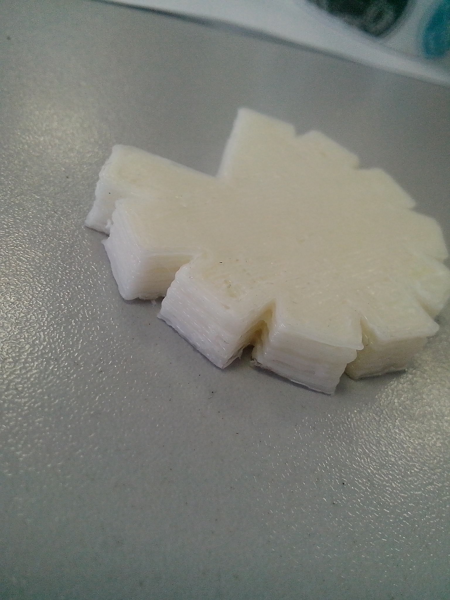 До этого тоже распечатывал модели, которые сам рисовал, всё было нормально. Единственное отличие этой - она занимает почти всю возможную рабочую область принтера (9х9 см из доступных 10х10).