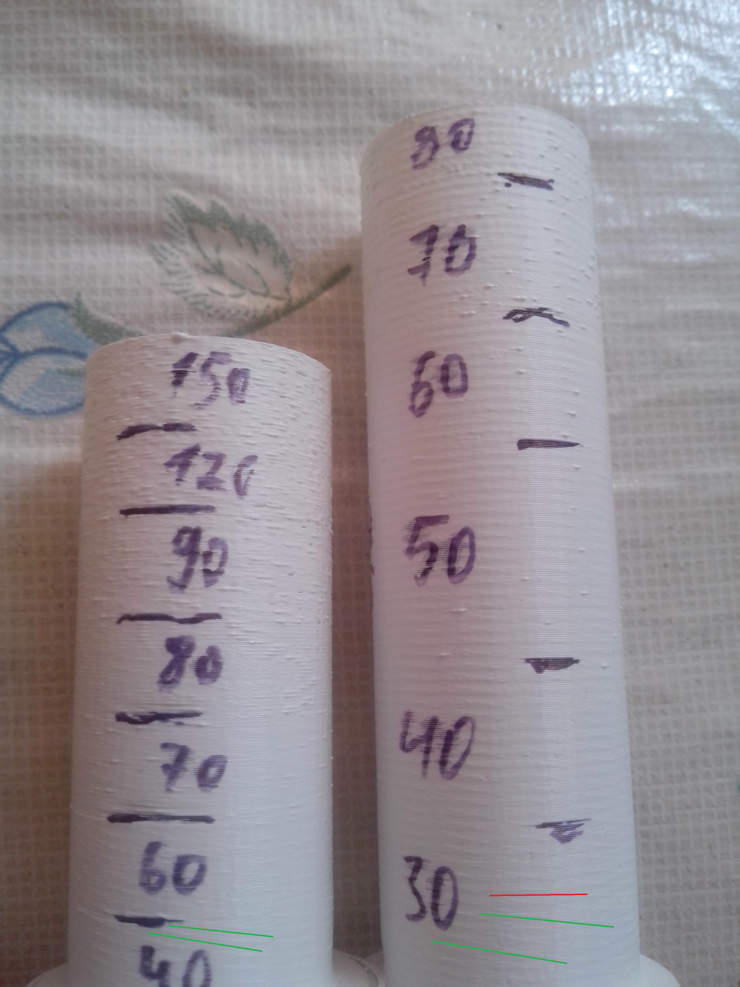 кстати на участке 70мм/с видны дефекты (точечные наплывы, с которыми я борюсь) расположенные под темже углом что и линии под небольшим углом к горизонтали про которые я спрашивал в прошлом посте