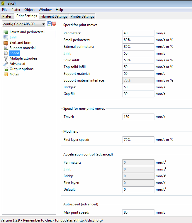 Принтер Prusa i2, Marlin, сопло 0,4, экструдер MK7 китайский (если правильно определил, вот он - https://ru.aliexpress.com/item/new-0-4mm-Nozzle-Extruder-Print-Head-for-3D-Printer-1-75MM-abs-pla/1237233215.html?spm=2114.13010608.0.0.7TtvVq).