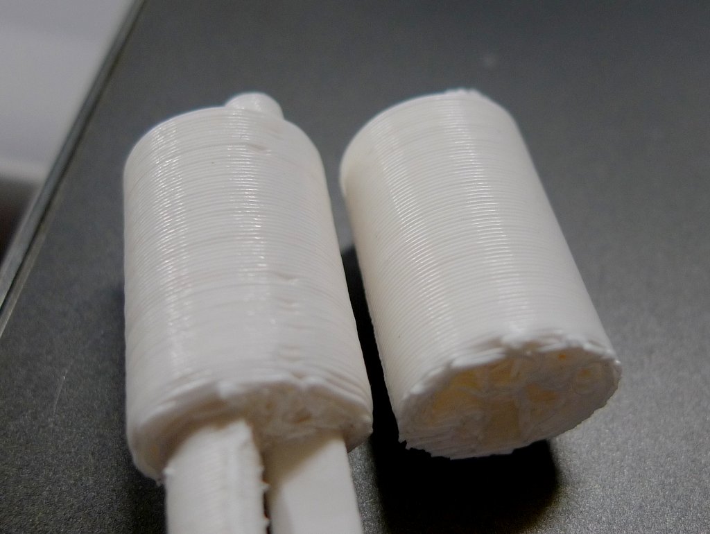 В тестовых кубиках, дыры, где заполнение есть, но не прилегает в анализаторе G кода было не видно. А вот в этом случае, когда ножки легко отодрались вместе с поддержкой, оказалось что кисслайсер не сделал дно цилиндрика. Вот можете скачать и глянуть модель и gcode после slic3r и kisslicer. У кисс смотрите 27 слой - там сразу пошло реденькое заполнение без сплошного слоя.