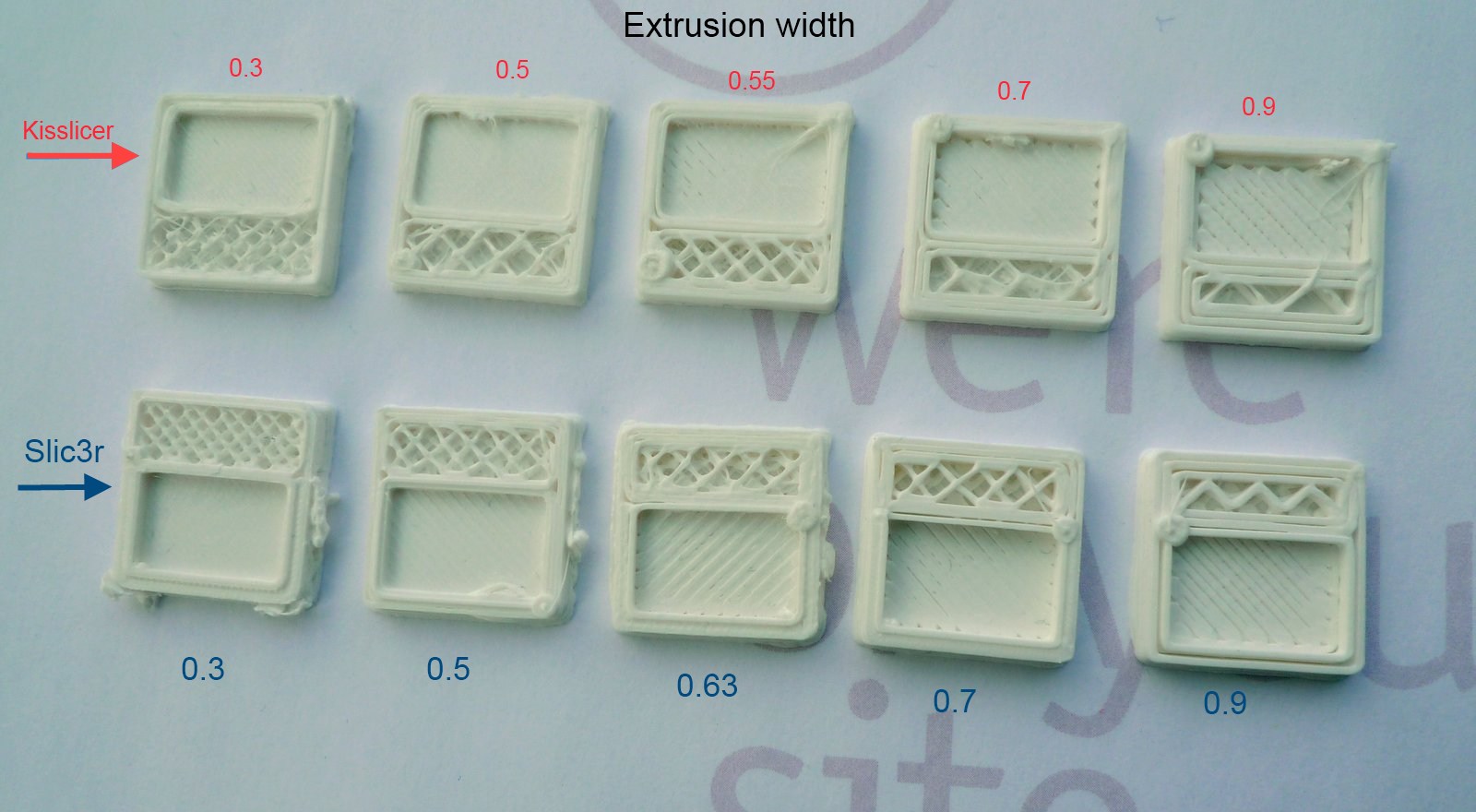 Дело в том, что я печатал вначале на горячем стекле, а потом перешел на классический вариант для PLA - стал клеить малярный скотч. Агдезия отличная. Но я забыл добавить толщину скотча в настройки! А это 0.1мм при толщине слоя 0.3 Итого треть пластика оказывалась лишней и собиралась в эти комки. Кисслайсер с этим более менее справлялся благодаря своему алгоритму. Он печатает начиная с внешнего периметра внутрь. Эти комки загонялись внутрь периметра. А Slic3r наоборот изнутри комки выгоняет наружу и они безобразно застывают на периметре.