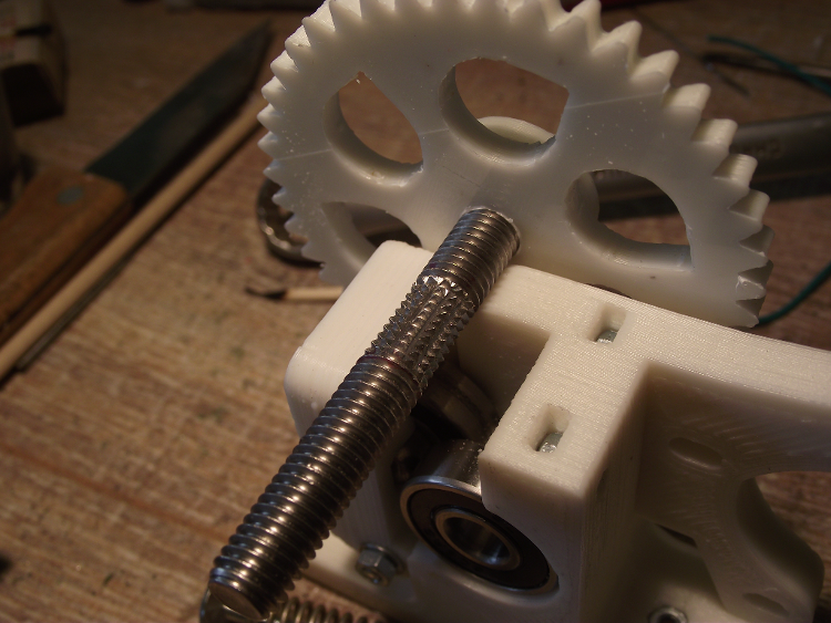 А вот еще вопрос к обществу - я сильно полюбил печатать триммерной леской или, что тоже самое капроном. Только для этого мне пришлось на экструдер поставить не обычный хобболт, а усиленного действия, зубчатый. Уход в сторону лески, я кажется преодолею кольцевым пазом в прижимном подшипнике - на фото немного видно. Но есть проблема - эти зубцы при ретракте, из мягкого ABSа выдирают крошку , которая забивает хобболт и сцепление ухудшается. Приходится продувать. Нечасто, но... Какой hobbet bolt посоветуете, чтоб и прижимал хорошо и не так резал? Если интересует, подробнее можно посмотреть и почитать у меня на странице, где я стараюсь отслеживать весь путь строительства и далее, от закупки комплектующих до сегодняшнего дня с фотографиями - http://sergku1213.livejournal.com/